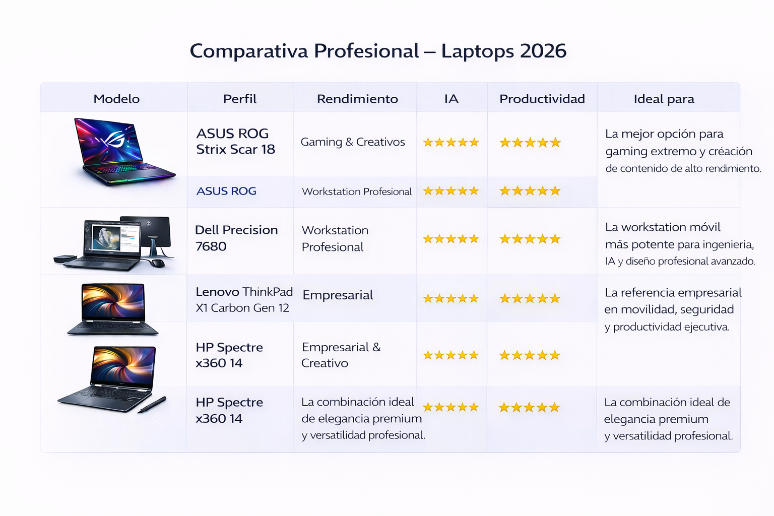 Descubre las mejores laptops del mercado seleccionadas bajo criterios técnicos reales: potencia, estabilidad, seguridad y rendimiento extremo para profesionales, empresas y creadores de alto nivel.